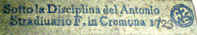 Disciplina del Antonio Stradiuario F. in Cremona 1723”,